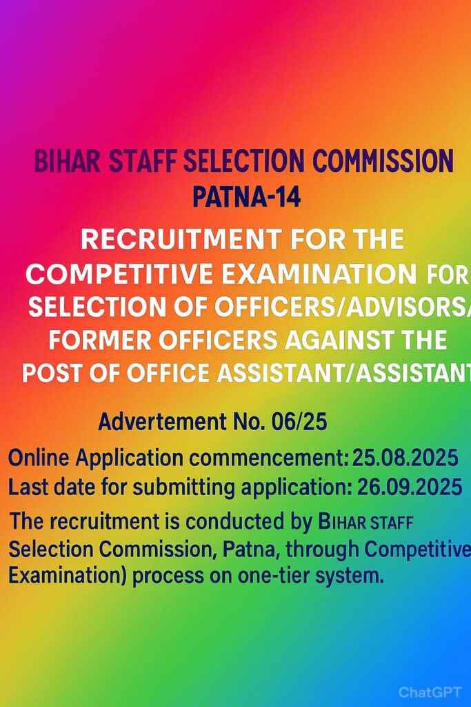 समर्पण रोजगार समाचार पटना, 25 अगस्त 2025बिहार कर्मचारी चयन आयोग (BSSC) ने कार्यालय परिचारी/परिचारी (विशिष्ट) पदों पर बहाली के लिए
